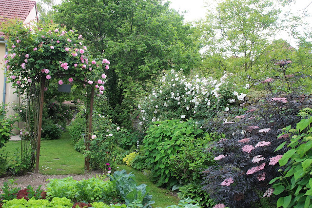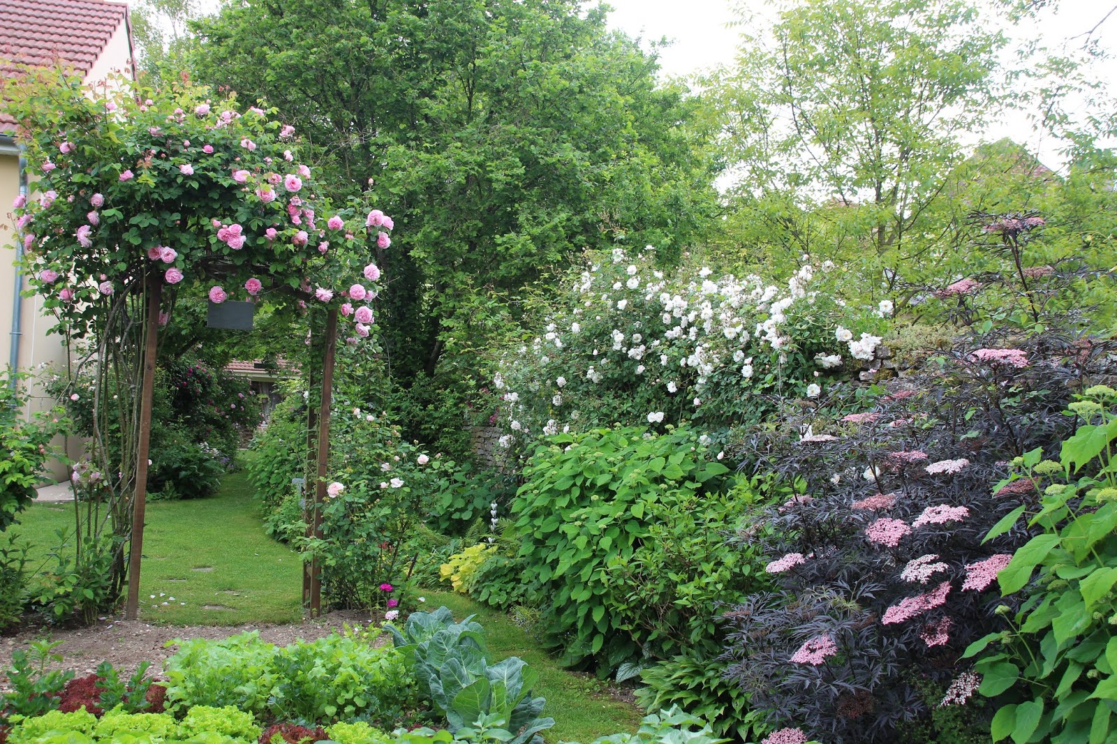 C’est Constance spry de David Austin qui marque l’entrée du potager