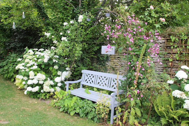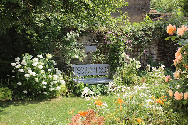 En juillet, les roses s’essouflent mais les hydrangeas prennent le relais dans la bordure