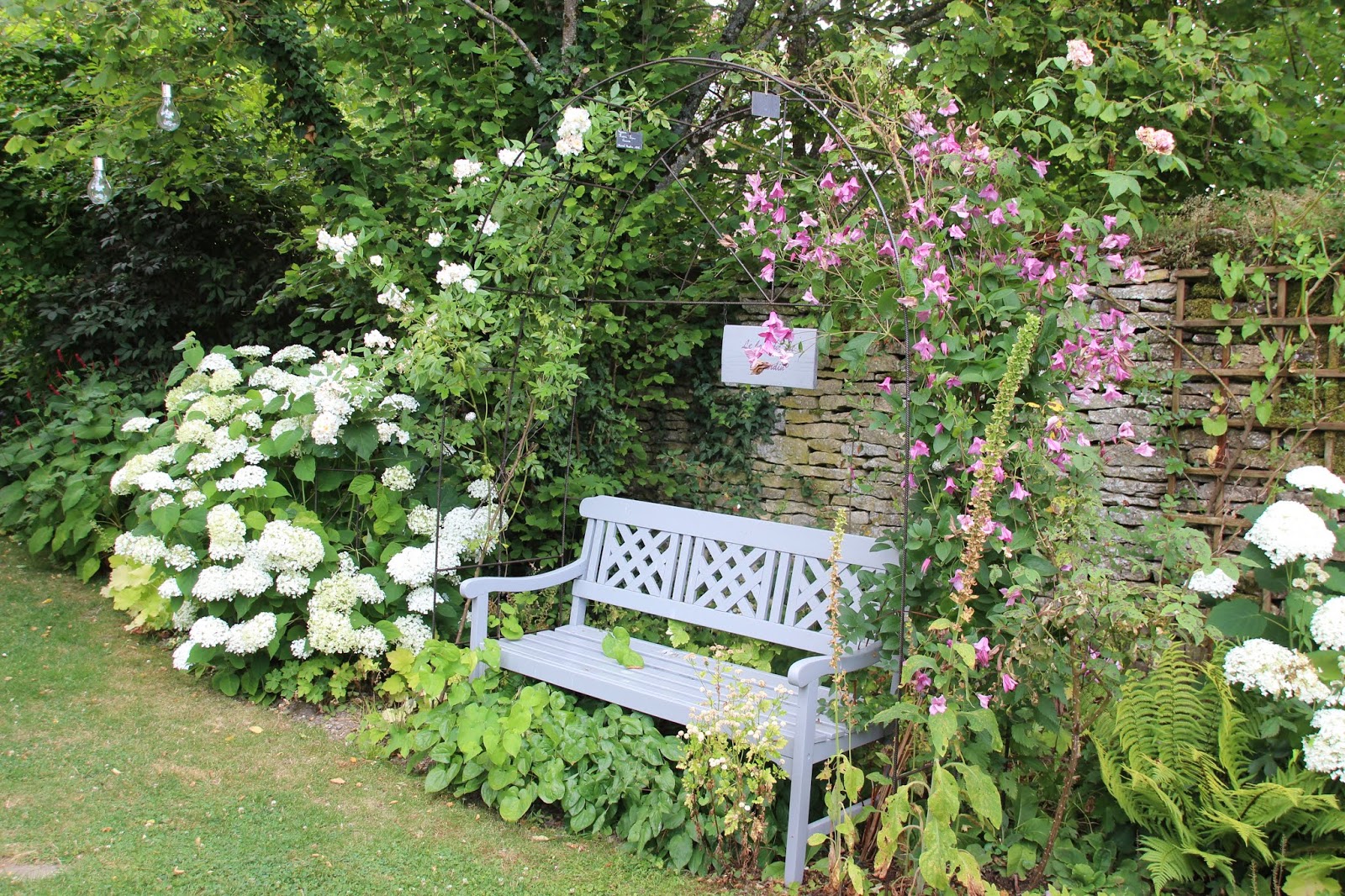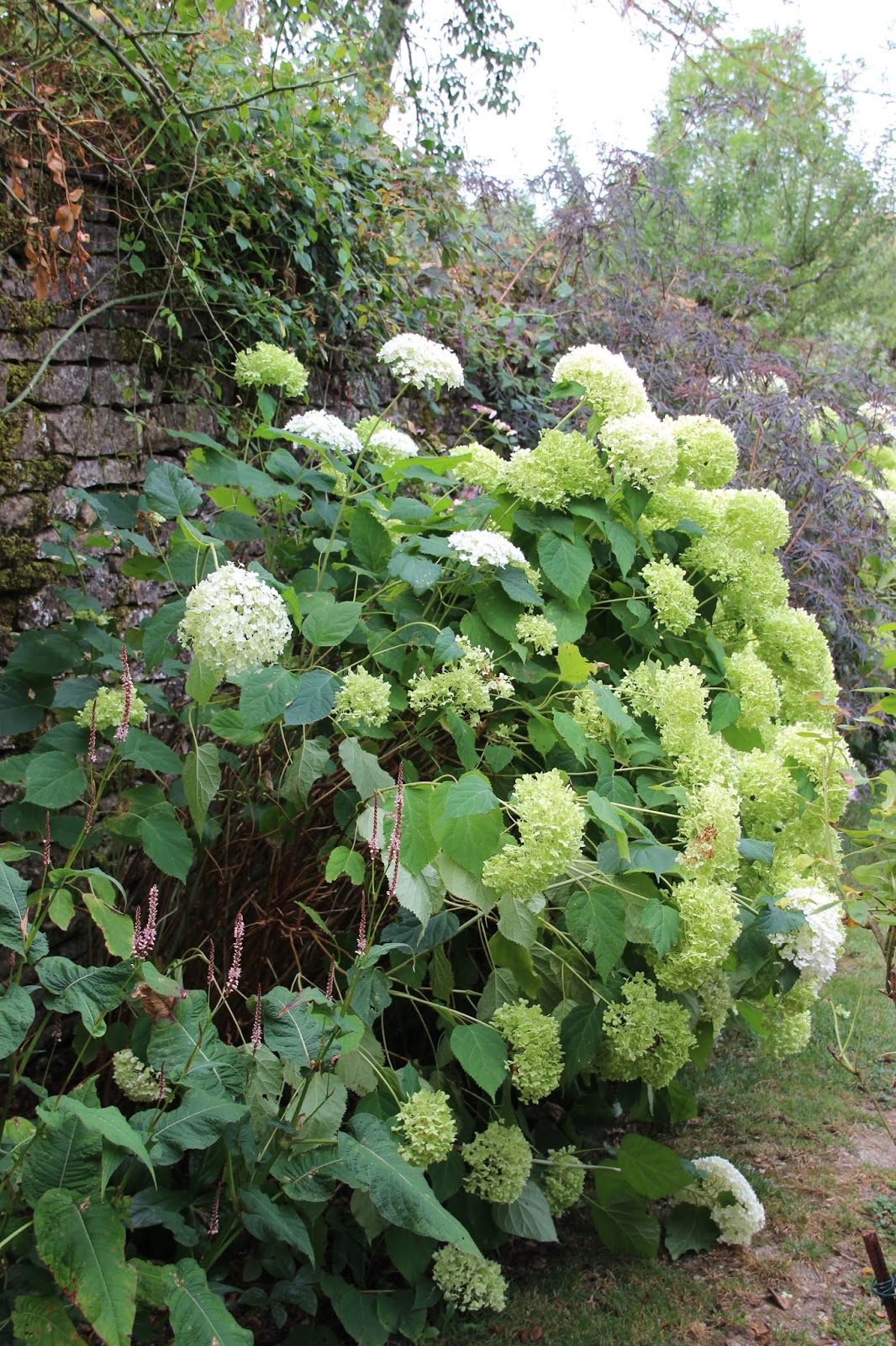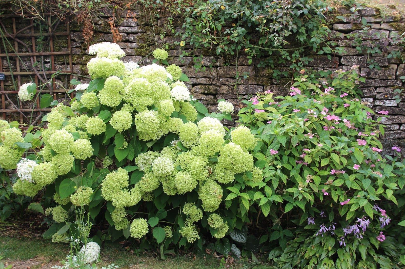 Trois hydrageas annabelle sont installés dans la bordure, un hydrangea incrediball ainsi qu’un hydrangea serrata