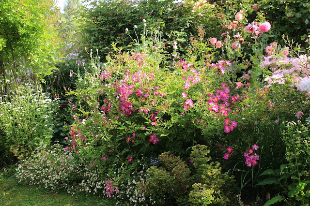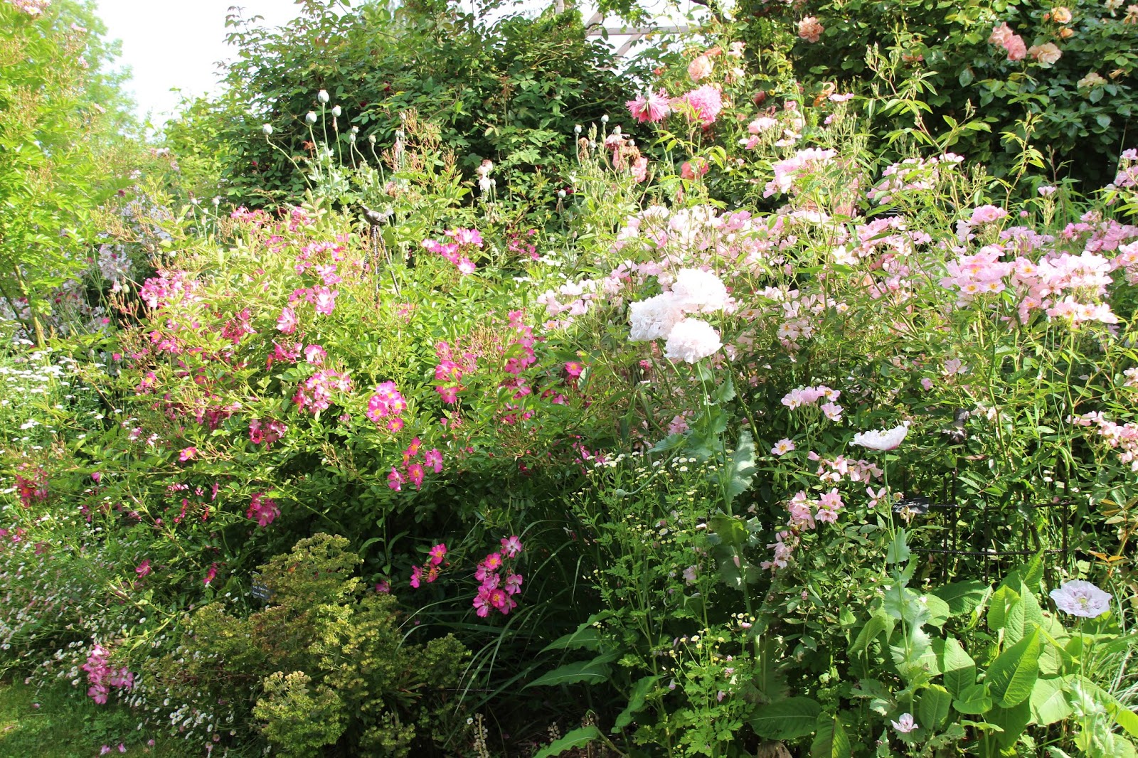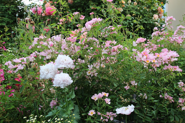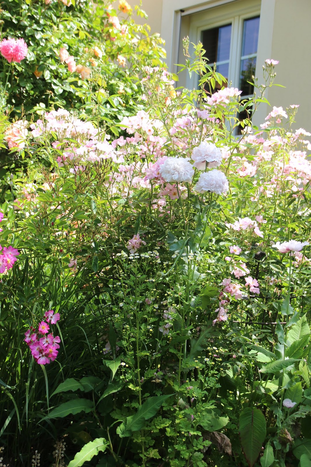 Les pavots se mélangent au rosier Pink Magic de Lens, que j’adore