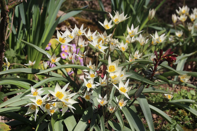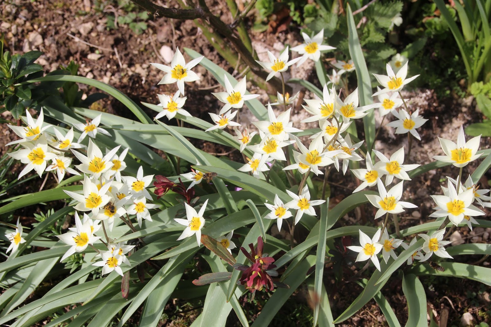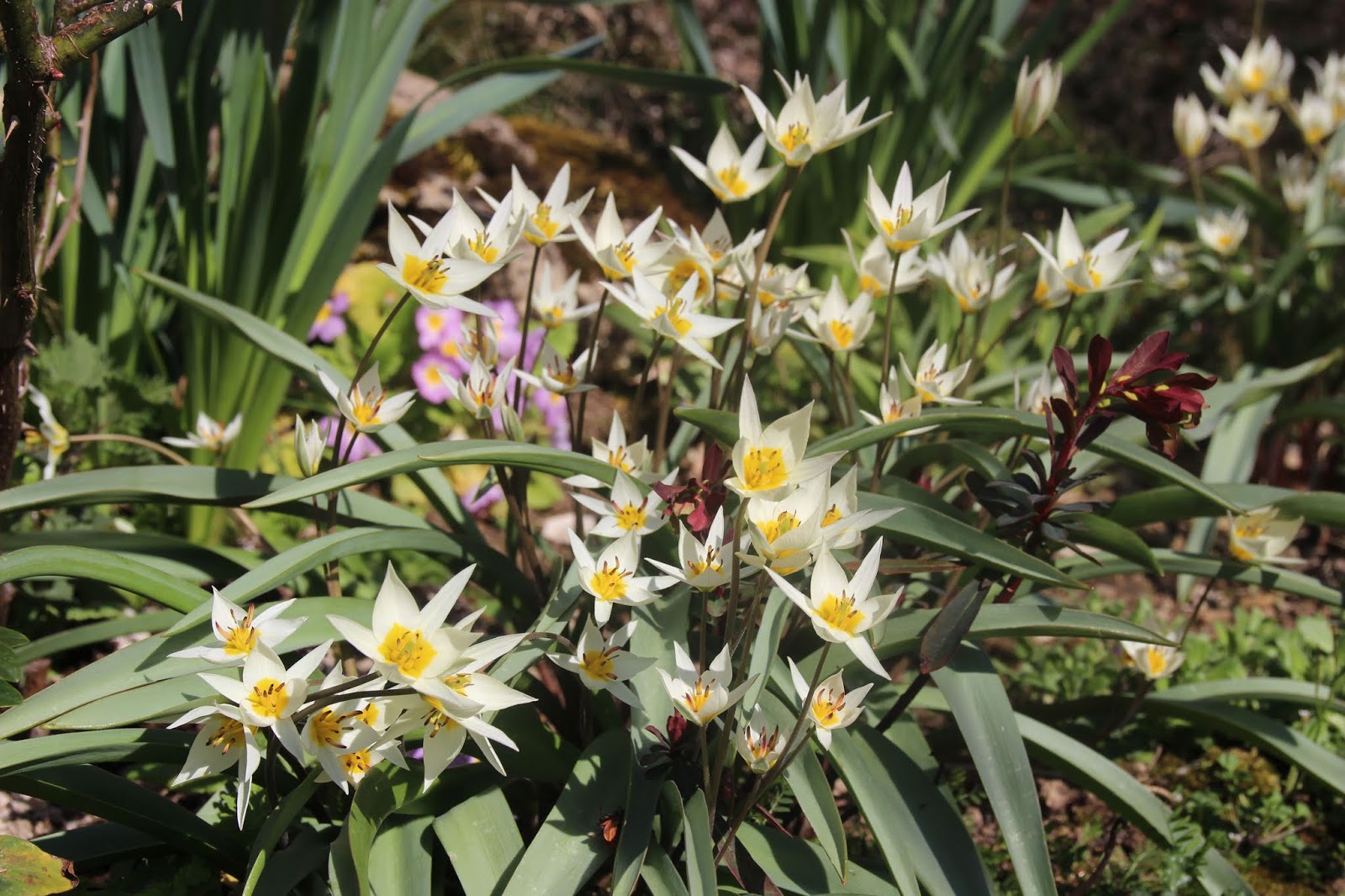 Les tulipes turkestanica ont été installées il y a quelques années et elles se multiplient d’une saison à l’autre, pour mon plus grand bonheur