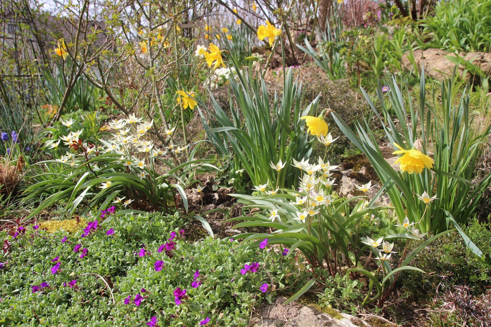 Les feuillages arrivent, les bulbes ont presque tous défleuris mais les couvres sols printaniers animent bien